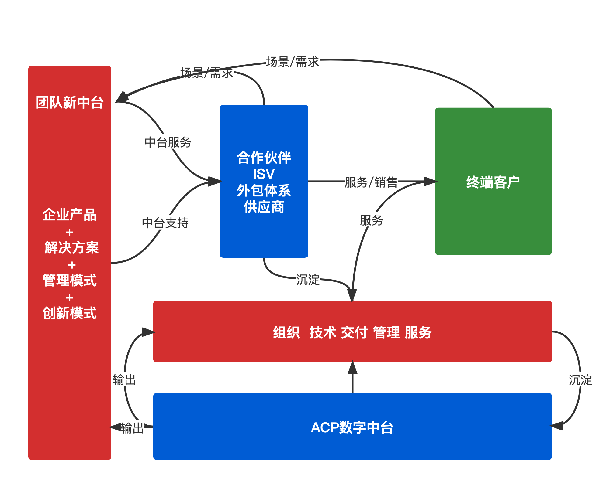 以客戶服務(wù)第一的原則,利用自身業(yè)務(wù)沉淀的優(yōu)勢(shì),整合出新的大中臺(tái)能力,然后集成各類 ISV 模式,提供更優(yōu)質(zhì)和創(chuàng)新的服務(wù)能力,更好的業(yè)務(wù)體驗(yàn)和業(yè)務(wù)場(chǎng)景挖掘。
